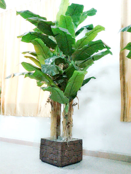 品名:芭蕉树材料:树杆(塑胶杆/真芭蕉皮);叶子(仿真叶)。
